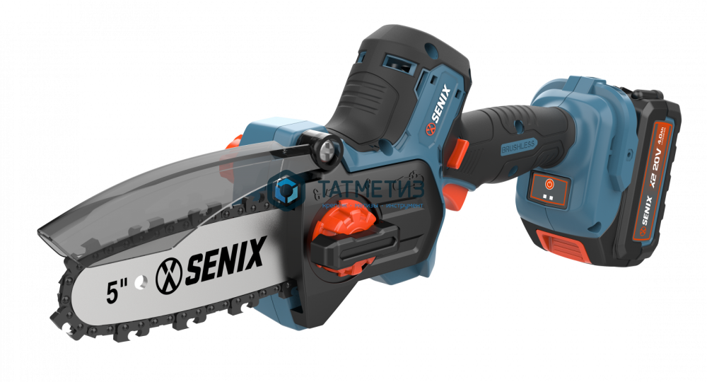 Пила цепная аккум. X2 SENIX CSX2-M3-EU (20В,бесщет, шина 5",11 м/с, масл бак, 4Ач,бесключ смена)