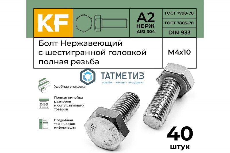Болт М12 х 40 DIN 933 А4 нержавейка | Под заказ |
